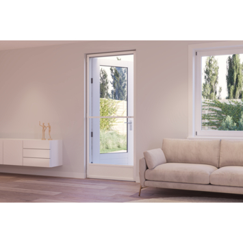 De Bruynzeel S800 hordeur 100x235 cm wit zorgt ervoor dat insecten buiten blijven terwijl frisse lucht naar binnen kan stromen. Deze hordeur is geschikt voor deuren die naar binnen of naar buiten draaien en kan eenvoudig op het kozijn worden geplaatst, wat een nette afwerking garandeert.