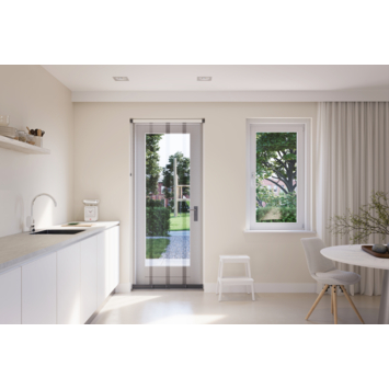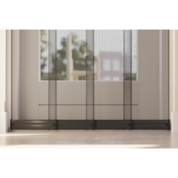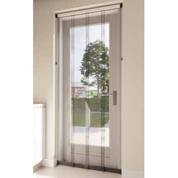 Het gepatenteerde railsysteem zorgt voor een soepele werking en de verzwaringsplaten met stootrubbers houden de lamellen netjes op hun plaats. De zwarte polyester gaaslamellen van 27 cm breed zijn flexibel in gebruik en geschikt voor dagelijks verkeer, ook wanneer kinderen of huisdieren door de deur lopen. De set wordt compleet geleverd met een lichtgrijze kunststof bovenrail, antracietkleurige verzwaringsplaten, eindkappen, stootdoppen en een montagehandleiding.