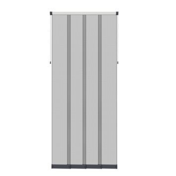 De Bruynzeel lamellenhor deur S700 95x235 cm grijs is een praktische oplossing om insecten buiten te houden terwijl je de deur normaal blijft gebruiken. De hor bestaat uit vier overlappende lamellen waar je eenvoudig doorheen loopt. Na het passeren vallen de lamellen automatisch weer terug op hun plek, zodat vliegen en muggen geen kans krijgen en frisse lucht vrij kan binnenstromen. Wanneer je de doorgang volledig wilt vrijmaken, schuif je de lamellen met behulp van het koord opzij.