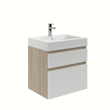 Monta is een exclusief en modern badkamermeubel. De combinatiemogelijkheden met hoogglans wit en diverse houtdecors maakt deze serie uniek in zowel de sfeervolle als moderne stijl. De 2 laden zijn volledig uittrekbaar en zorgen voor veel ladevolume.