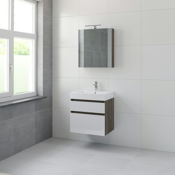 Bruynzeel Monta badmeubelset met spiegelkast 60 cm wengé/wit