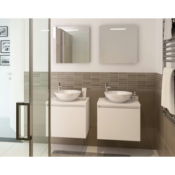 Bruynzeel badkamermeubel Nerano is een badkamermeubel waarbij de onderkast gecombineerd kan worden met een ronde opzetkom of met een invallende wasbak. Je kunt zelf bepalen waar je de waskom en kraan positioneert. Op deze manier zijn er verschillende opstellingen mogelijk./p>