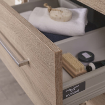 Deze Bruynzeel Optima badkamermeubel set 90cm grijs eiken met vierkante greep is eenvoudig zelf te monteren. Mocht je nog opbergruimte missen dan kun je de kolomkast uit de Bruynzeel Optima serie goed gebruiken. Die sluit namelijk naadloos aan bij het design van deze badkamermeubel set.