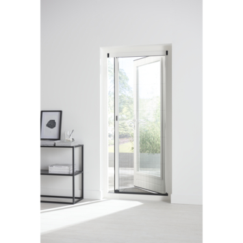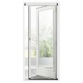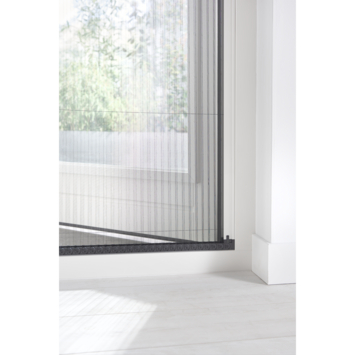 De Bruynzeel plisséhordeur 900 serie is in het kozijn, op nagenoeg alle deuren te monteren. Het zwart geplisseerde horgaas wordt slijtvast geleid in een gepantenteerde, kunststof ketting waardoor het windbestendig is. Bovendien is het horgaas in lichte mate zonwerend en past bij elke interieurtype. De ondergeleiding van slechts 5 mm zorgt voor een vrije doorloop naar uw terras of tuin. Er zijn verschillende maten beschikbaar, ook dubbele deuren zijn mogelijk. Wil je de Plissé op het kozijn monteren, bestel dan ook Bruynzeel Plissé set op de dag.
