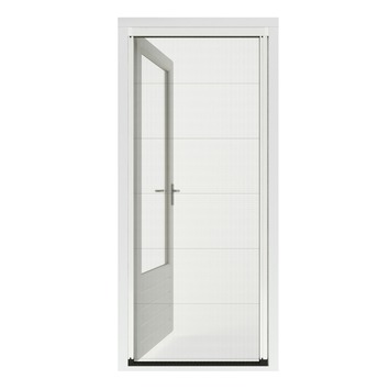 De Bruynzeel plisséhordeur 900 serie is in het kozijn, op nagenoeg alle deuren te monteren. Het zwart geplisseerde horgaas wordt slijtvast geleid in een gepantenteerde, kunststof ketting waardoor het windbestendig is. Bovendien is het horgaas in lichte mate zonwerend en past bij elke interieurtype. De ondergeleiding van slechts 5 mm zorgt voor een vrije doorloop naar uw terras of tuin. Er zijn verschillende maten beschikbaar, ook dubbele deuren zijn mogelijk. Wil je de Plissé op het kozijn monteren, bestel dan ook het Bruynzeel opbouwkader.