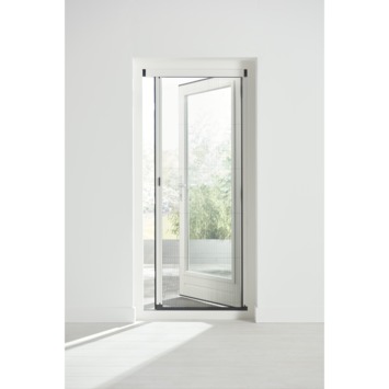 De Bruynzeel plisséhordeur 900 serie is in het kozijn, op nagenoeg alle deuren te monteren. Het zwart geplisseerde horgaas wordt slijtvast geleid in een gepantenteerde, kunststof ketting waardoor het windbestendig is. Bovendien is het horgaas in lichte mate zonwerend en past bij elke interieurtype. De ondergeleiding van slechts 5 mm zorgt voor een vrije doorloop naar uw terras of tuin. Er zijn verschillende maten beschikbaar, ook dubbele deuren zijn mogelijk. Wil je de Plissé op het kozijn monteren, bestel dan ook Bruynzeel Plissé set op de dag.