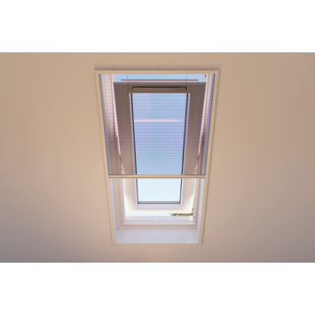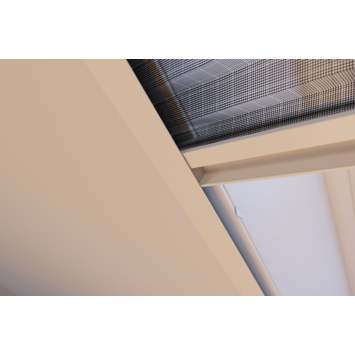 - Zwart geplisseerd gaas met witte aluminium profielen