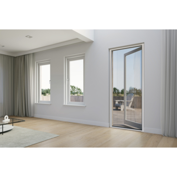 De Bruynzeel rolhordeur S700 110x215 cm wit houdt insecten buiten en laat frisse lucht naar binnen stromen. Het gaas rolt zijwaarts in een cassette en het automatische rolsysteem met demper zorgt voor een soepele en moeiteloze bediening. De veerspanning is instelbaar, zodat je de hor eenvoudig naar wens kunt afstellen.