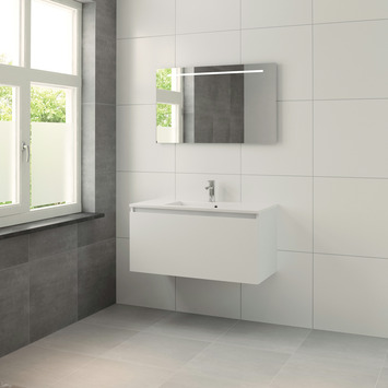 Deze 100cm brede wandspiegel met geïntegreerde LED verlichting is ideaal voor iedere badkamer. Monteer deze spiegel boven een onderkast of wastafel. Dankzij de geïntegreerde LED verlichting heb je altijd voldoende verlichting en kun je er van op aan dat je verzorgd het huis verlaat. De spiegel heeft een aan/uit schakelaar voor de verlichting. Liever nog even in de slaapstand je tanden poetsen? Dan laat je de lamp simpelweg uit.