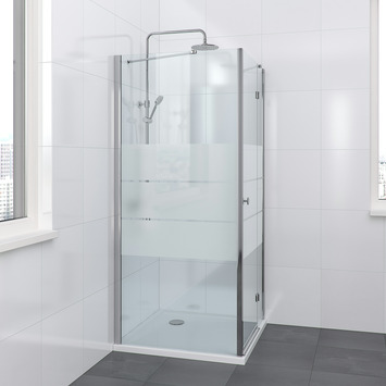 De Vitro serie is kenmerkend door de verchroomde scharnieren en de matte satijn stroken. Het profielarme design heeft een open karakter en vergemakkelijkt het onderhoud. De Bruynzeel Vitro draaideur is te plaatsen in een nis of in combinatie met de douchewand. De deur is verkrijgbaar in een rechts- en linksdraaiende variant en is met verchroomde scharnieren bevestigd aan een vast deel. Hierdoor scharniert de deur iets van de wand, handig als er een radiator naast de cabine hangt! Afstellen is simpel gezien de grote verstelbaarheid van 97-99 cm. Je plaatst de deur of cabine op een douchebak, dorpel of direct op de tegels. De douchewand is niet geschikt om als losstaande wand te plaatsen.
