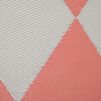 Het buitenkleed Naxos Roze/Crème met ruitvorm is een fraaie voor binnen of buiten. Een met de hand gemaakt kleed dat sfeer geeft aan jou tuin, balkon of dakterras! Met zijn 3 mm poolhoogte en geweven wezels is het kleed eenvoudig schoon te maken. Een grafische blikvanger voor binnen- en/of buitenshuis!