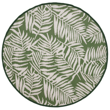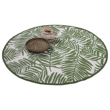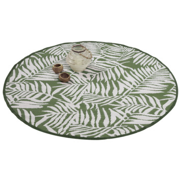 Met buitenkleed Tarragona legergroen/wit 150cm geeft een gezellige sfeer aan jouw tuin, balkon of dakterras. Het ronde kleed heeft een doorsnede van 150cm. Dit buitenkleed is UV-bestendig en gemaakt van polypropyleen. Daarnaast is het kleed zeer gemakkelijk schoon te maken en dus uitermate geschikt voor buiten.