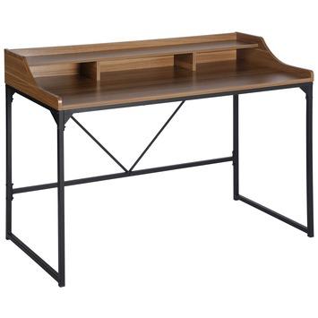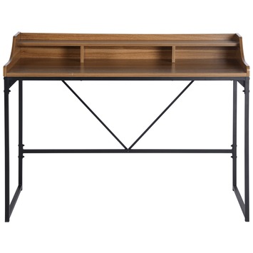 Bureau Cynthia is erg handig voor gebruik met 3 vakken. Het tafelblad van dit bureau is groot, waardoor je lekker veel spullen er op kunt zetten. Ook heeft dit bureau een extra plank wat zorgt voor structuur en extra ruimte. Ideaal om als computertafel te gebruiken dus! Dit bureau ziet er strak en stijlvol uit en is makkelijk te combineren met veel huisstijlen en meubilair. Je kunt er ook decorstukken op zetten om het bureau nog aantrekkelijker te maken. Het bureau heeft een warme kleur met metalen poten en is verder netjes glad afgewerkt. Dit bureau is 90 centimeter hoog, 62 centimeter lang en 120 centimeter breed.