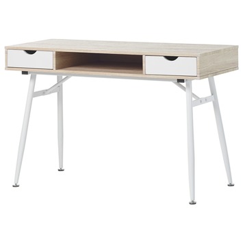 Bureau Daan, whitewash eikenkleur met wit metalen onderstel. Afm. (bxdxh): 120x48x76 cm