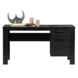 Massief, FSC gecertificeerd, grenenhout afgelakt in het zwart. Met handig ingebouwd kastje en lade