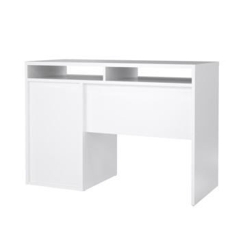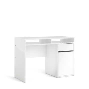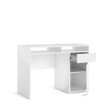 Bureau Eline is gemaakt van hout en een perfecte toevoeging aan de studeerkamer! Het heeft een witte kleur, maar is ook in het zwart verkrijgbaar. Het bureau Eline is een modern en stoer bureau dat zowel in een tienerkamer als in een volwassen kantoor past, maar ook in de woonkamer of studeerkamer. Het bureau heeft een groot blad en een lade voor opbergruimte, het is ideaal om aan te studeren of te werken. De hoogte van bureau Eline is 78,4cm, de diepte is 48,2cm en de breedte is 1,10m.