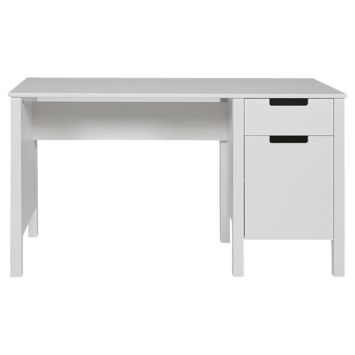 Een basic, robuust bureau met een praktisch ladeblok dat is dit Jade bureau uit de collectie van het Nederlandse merk WOOOD. Dit bureau is voorzien van een lade en een kastje aan de rechterzijde van het bureau. Jade is gespoten in een frisse witte kleur en is gemaakt van massief grenen.