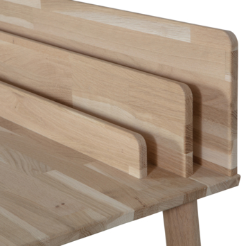 Het Leva bureau is gemaakt van sterk eikenhout. Het Leva bureau is afgewerkt in met een transparante coating.