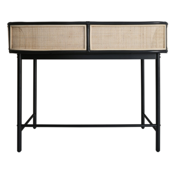 Thuiswerken volgens de laatste trends? Dat kan met dit prachtige bureau met webbing details. Door de zwarte kleur komt deze in elk thuiskantoor tot zijn recht. Webbing is weer helemaal trendy dit jaar. Terug van weggeweest, klaar om te blijven. Webbing is een soort gevlochten riet, wat het een zeer stijlvol en universeel materiaal maakt. Haal dus snel deze trendy eyecatcher in huis!