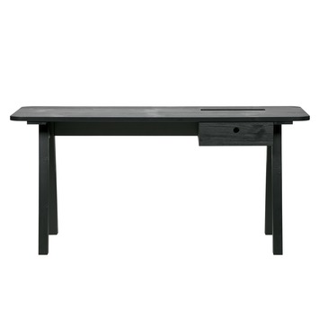 Bureau Sammie is gemaakt van geborsteld grenen FSC gecertificeerd en is met een semi transparante lak afgelakt in de kleur grafiet. De houtnerf is mooi zichtbaar gelaten om het natuurlijke uiterlijk van het hout te behouden. Bureau Sammie is 74 cm hoog, 160 cm breed en 65 cm diep. Het bureaublad heeft een dikte van 2 cm. Bureau Sammie staat stevig op A-frame poten. De ruimte tussen deze poten bedraagt 121 cm, genoeg ruimte voor een comfortabele bureaustoel. Bureau Sammie heeft een lade van 33 cm breed en 31 cm diep, ideaal om losse rommeltjes in op te bergen. Bureau Sammie past prima in meerdere woonstijlen en is perfect geschikt voor elke werkplek.