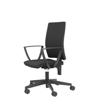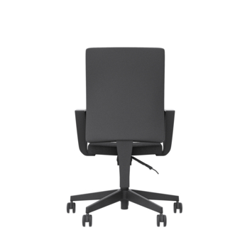 De stoel heeft vaste armleuningen en heeft een onderstel met wielen geschikt voor zachte ondervloeren. De bureaustoel is in hoogte verstelbaar.