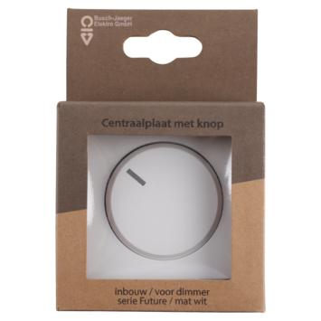 Met de Busch-Jaeger Future Linear Centraalplaat Dimmer Mat Wit dimmerknop met plaat wit maakt je je dimmer weer compleet als deze beschadigd of incompleet is geraakt. De dimmerknop met plaat past op elk dimmer basiselement uit de Busch-Jaeger serie. De dimmer basiselementen zijn los leverbaar.