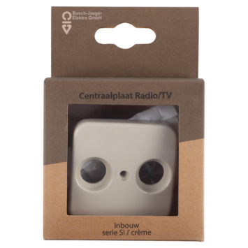 De centraalplaat radio/tv wordt gebruikt om het universeel radio/tv basiselement af te dekken. De afdekkingsplaat met afdekraam maakt de combinatie compleet. De centraalplaat past binnen de Busch-Jaeger Reflex SI serie en heeft de kleur Crème.