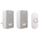 De beldrukker werkt op de meegeleverde CR2032 batterij en kan daardoor makkelijk geïnstalleerd worden bij elke deur. De twee deurbellen kunnen ook overal in huis geplaatst worden. Deze set bestaat uit een plug-in deurbel, deze past in elk stopcontact en een draagbare deurbel. Dankzij het bereik tot 150 meter kun je bijvoorbeeld een deurbel op zolder plaatsen en een meenemen in de tuin. Zo mis je geen enkele bezoeker.