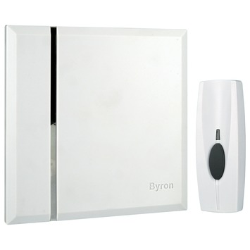 De Byron deurbelset BY401B draadloos bestaat uit een witte deurbel en een witte beldrukker. De deurbel heeft 4 verschillende melodieën (geluidsniveau 85 decibel). De deurbel heeft een draadloos bereik van 60 meter. Je kunt de deurbel gewoon in de hal ophangen, maar het is ook mogelijk om deze draagbare deurbel mee te nemen naar een werk-/verblijfplek waar je de bel, als deze in de hal zou hangen, niet kunt horen, zoals zolder, schuur, enzovoort.