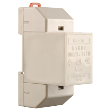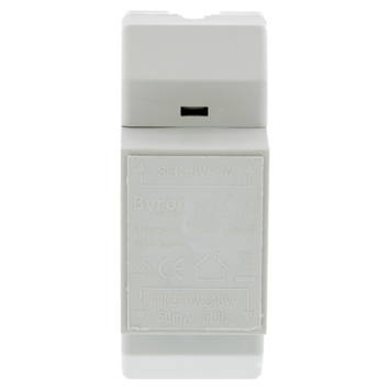 De Byron transformator 7770, 8 volt en 1 ampère, is geschikt voor alle Byron bedrade deurbellen of andere merken deurbellen die aan dezelfde technische eisen voldoen.