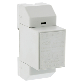 Super makkelijk aan te sluiten beltransformator. Past in groepenkast (railsysteem), maar ook los te bevestigen. Lekker compact, kleiner dan de oude trafo's.
