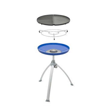 De Cadac Grill2Braai blauw d45cm is een handige gasbarbecue. Door het lichtgewicht makkelijk mee te nemen en het heeft een aluminium grillplaat die uit 2 delen bestaat: half geribbeld en half vlak. De grillplaat heeft een non-stick coating en is dus eenvoudig te reinigen. Terwijl u op één zijde vis, vlees of kip grillt kunt u op de vlakke helft pannenkoeken, eieren of ham bakken. Het onderstel is eenvoudig los te schroeven en op te bergen in de bijgeleverde draagtas. Voor de branderpan en de grillplaat wordt een afzonderlijke tas meegeleverd. Cadac Grill2Braai blauw d45cm is 63 centimeter hoog, 63 centimeter breed en 72 centimeter diep.