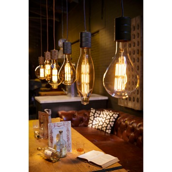 Fijne lamp die we kunnen dimmen. Hangt samen met de Calex led filament Big Tower E40 11W dimbaar goud en 2 Big Globe. Ziet er prachtig uit. Jammer dat ze uit het assortiment zijn.