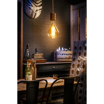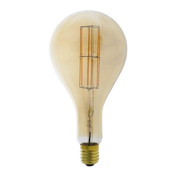 Deze Calex led filament Big Splash goud is een decoratieve lichtbron met een unieke led techniek. Door het filament is er bijna geen verschil meer te zien met de ouderwetse gloeilamp. Deze Calex energie zuinige lichtbron is een echte eyecatcher en heeft geen bijzondere armatuur meer nodig, dit is al een bijzondere lamp op zichzelf. De lengte van de lamp incl. fitting is 32 centimeter en de diameter 16,5 centimeter. Deze lamp is er ook in andere varianten. Let op: Deze lamp heeft een extra grote fitting en past daardoor niet in een lamp met een normale fitting. Gebruik deze lampen alleen in combinatie met bijbehorende pendels (E40).