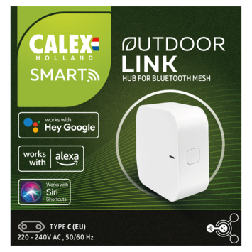 Je tuin smart maken was nog nooit zo eenvoudig als met de Calex Smart Outdoor collectie. De Calex Link pikt de lokale WiFi verbinding (2.4 GHz) op en verspreidt deze middels Bluetooth Mesh met minimaal één Calex Outdoor device in de tuin. De Calex devices staan onderling met elkaar in verbinding en verspreiden de sterke verbinding zolang ze binnen elkaars bereik blijven. Zo breid je het bereik voor je tuin flink uit zonder dat dit ten koste gaat van de verbinding. De Calex Link is volledig geïntegreerd met de Calex Smart App en werkt daarnaast eenvoudig via Amazon Alexa, Google Home en Apple ’s Siri.