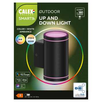 Deze moderne en slimme Up&Down light met ingebouwde ledlampen maakt van je tuin een sfeervol geheel. Verlicht je gevel of schutting met warm wit licht voor lange (zomer)avonden of kies uit 100+ kleuropties die bij jouw stemming passen. Ervaar een volledig geïntegreerd slim systeem dat is gebaseerd op het Bluetooth Mesh protocol. Deze Up&Down light heeft een doorsnede van Ø76mm en een hoogte van 138mm. Ongeacht de grootte van je tuin of het aantal geplaatste items, deze producten zijn allemaal met elkaar te verbinden en te beheren vanuit dezelfde gratis Calex app die je gebruikt voor de bestaande Calex Smart producten. - Eenvoudige installatie via gratis Calex app - Geniet van 100+ kleuropties en verstelbaar wit licht - Direct dimbaar - Werkt met Google Home, Amazon Alexa en Siri