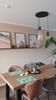 Prachtige sierlijke lamp die helemaal tot zijn revht komt boven de eettafel.