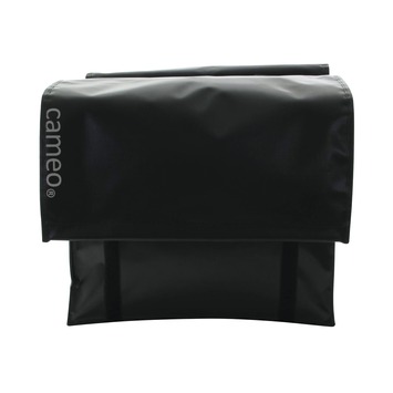 De Cameo dubbele fietstas bisonyl 46 liter zwart is een extra zwaar uitgevoerde fietstas gemaakt van waterbestendig bisonyl. Bisonyl is een gecoat PVC doek en is zeer sterk en robuust. Dit zijn daarom de meest geschikte fietstassen bij intensief gebruik. De tas heeft een afmeting van ca. 39x33x18 cm (hxbxd) per kant en heeft een inhoud van 23 liter per kant. Je legt deze fietstas gemakkelijk over de bagagedrager waarna je ze met de clips kunt vastzetten. Je kunt de snelbinders dan ook blijven gebruiken. De flappen van de tas kun je met klittenband vastzetten.