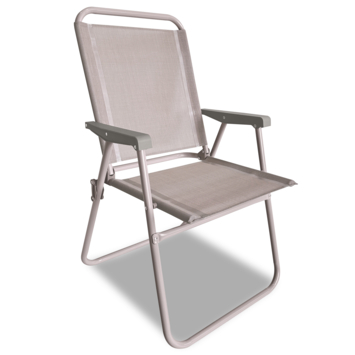 Op zoek naar de perfecte stoel voor buiten? Deze zandkleurige inklapbare campingstoel is de oplossing. Of je nu naar het strand gaat, kampeert of in de tuin wilt relaxen, de stoel biedt volop comfort. De zandkleurige zitting van textiel en het metalen onderstel passen goed in iedere buitenomgeving. Met een hoogte van 90,5 cm, breedte van 60,5 cm en diepte van 54,5 cm biedt de stoel een prettige zit. De zithoogte van 41 cm zorgt voor een ontspannen positie en de armleuningen geven net dat beetje extra steun. Het waterafstotende materiaal maakt de stoel bestand tegen vocht en makkelijk schoon te houden. Na gebruik vouw je de stoel simpelweg in en berg je hem compact op. Ideaal voor je avonturen in de natuur!