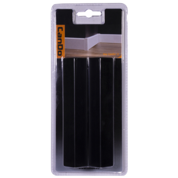 Het CanDo hoekstuk is een kunststof accessoire om je plint fraai en strak in binnen- en buitenhoek te bevestigen. Dit hoekstuk past bij de hoge matzwarte plinten van CanDo en kun je gemakkelijk met een fijngetande zaag op de gewenste hoogte maken. Bevestig het hoekstuk met montagekit. De hoekstukken zitten per 2 stuks verpakt in een blisterverpakking. Afneembaar met vochtige doek en niet-agressief schoonmaakmiddel.