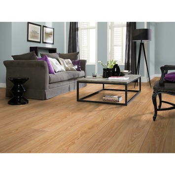 Het CanDo laminaat XXL natuur eiken V-groef 1,39 m2; is een pakket met vloerdelen van kliklaminaat die je interieur helemaal afmaken door de natuur eiken afwerking. Het laminaat van CanDo is extra lang (184,5 cm), extra breed en daarmee extra mooi. De V-groeven en houtnerven geven dit laminaat het uiterlijk van een echte houten vloer. Met het CanDo laminaat XXL natuur eiken V-groef 1,39 m2 creëer je dus de looks van houten planken, maar geniet je van het onderhoudsgemak van kliklaminaat. Bovendien wordt hij geleverd met maar liefst 25 jaar garantie, wat betekent dat je er nog lang van kunt genieten. Maak je vloer af door bijpassende muur- of plakplinten te plaatsen.