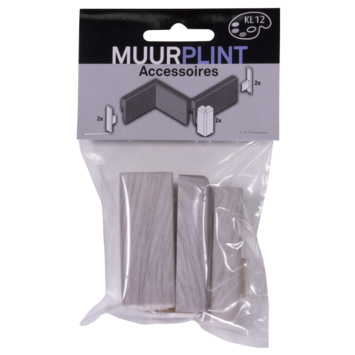 Deze kunststof accessoires in lichtgrijs kun je gebruiken voor de muurplinten met een dikte van 12 mm en een hoogte van 58 mm in model blok. Een setje bevat 2 eindstukken links en rechts die je kunt gebruiken bij een kozijn en een buitenhoek. Bevestig de accessoires met montagekit. Afneembaar met een vochtige doek en een niet-agressief schoonmaakmiddel.