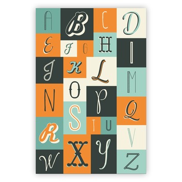 Canvas - Assorti 60 x 40 cm is een kleurige print in frame en past daardoor vrijwel in ieder interieur op de muur. Op één print is op een sierlijke, maar stijlvolle manier het alfabet van A tot Z weergegeven. De andere print brengt een positieve en liefdevolle boodschap: 'Today is going to be a wonderful day'. Het frame is 60 centimeter hoog en 40 centimeter breed.
