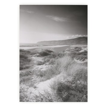Canvas - Duinen 100 x 70 cm is een print in frame weergave van de duinen. Door de grijs-wit tint past de print vrijwel in ieder interieur op de muur. De geïllustreerde weergave heeft een rustige en luxe uitstraling. Het frame is 100 centimeter hoog en 70 centimeter breed.