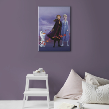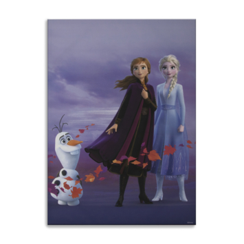 Versier de kinderkamer van je dochter in een handomdraai met deze fraaie Disney Frozen canvas Herfst met de favoriete personages uit de Frozen 2 film. De canvas waarop Anna, Elsa en Olaf in herfst sfeer afgebeeld zijn, heeft een frame van MDF en is 100 cm hoog, 70 cm breed en 3 cm diep. Het is voorzien van een ophanghaakje.