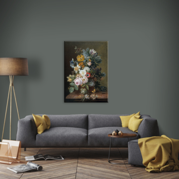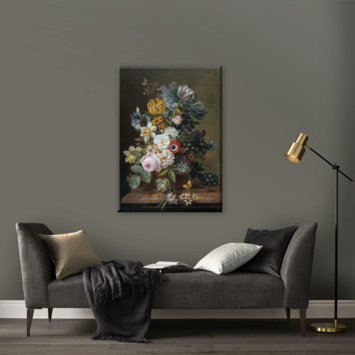 Wil je een echte Hollandse Meester in je eigen interieur? Ga dan voor Art for the Home canvas Stilleven met bloemen. Dit stilleven van uitbundige, veelkleurige bloemen is gewoonlijk te bezichtigen in het Rijksmuseum, maar nu verkrijgbaar voor bij je thuis. De canvas heeft een frame van MDF en is 100 cm hoog, 70 cm breed en 3 cm diep. Het is voorzien van een ophanghaakje.