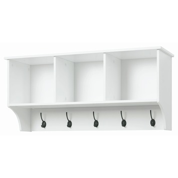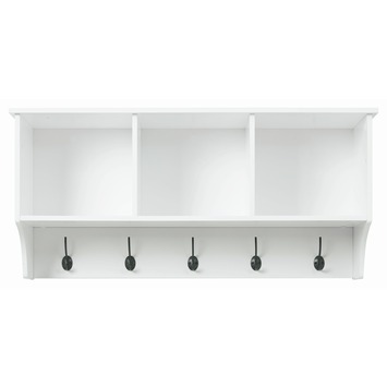 De kapstok Carnac uit de serie Bretagne is een sieraad in de hal of gang. Met 3 handige opbergvakken (binnenmaat per vak hxb 25x27,5 cm) waarin je bijvoorbeeld sjaals, mutsen en handschoen kunt opbergen en 5 dubbele metalen kapstokhaken. De afmetingen zijn (hxbxd): 41,5x90x28 cm. De kapstok Carnac is gemaakt van FSC gecertificeerd MDF en is afgelakt in de kleur wit RAL nummer 9003. Bij deze kapstok Carnac is een halbank Vannes verkrijgbaar. Met deze beide artikelen maak je een fraaie kapstok/halbankset en creër je veel opbergruimte op een centrale plaats voor sjaals, mutsen, handschoenen, schoenen en laarzen.