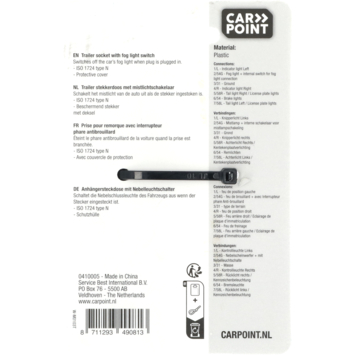 Carpoint 7-polige stekkerdoos voor auto of camper met mistlampschakeling.