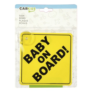 Ga veilig op pad met het Carkids “Baby on Board” bordje. Dit bord is ontworpen om de hulpdiensten erop te attenderen dat er een baby of kind in de auto aanwezig is in geval van een calamiteit. Het bord heeft een opvallende gele kleur en kan eenvoudig met de zuignap aan de binnenkant van het achterraam van de auto geplakt worden. Plaats het bord wel zo dat het bord u niet hindert in het zicht veld naar achteren.