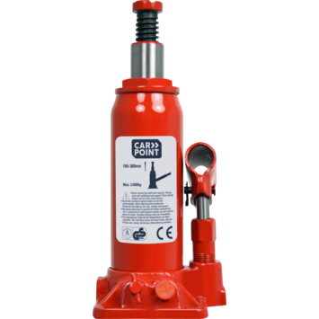 De Carpoint hydraulische potkrik geschikt voor het liften van auto’s, caravan of aanhangwagen. De krik is maximaal belastbaar tot 3000 kilogram. Deze robuuste en stabiele potkrik heeft een hefbereik van 195-380mm. Minimum hoogte: 195mm Hefhoogte: 130mm Maximale hoogte: 380mm De hydraulische Carpoint potkrik is gevuld met olie en is door middel van de dubbele pompstang makkelijk te bedienen. Het overdrukventiel zorgt ervoor dat de potkrik niet wordt overbelast. Plaats de krik altijd op een vlakke stevige ondergrond. Gebruik de potkrik alleen om een voertuig te liften en gebruik assteunen om het voertuig te ondersteunen.